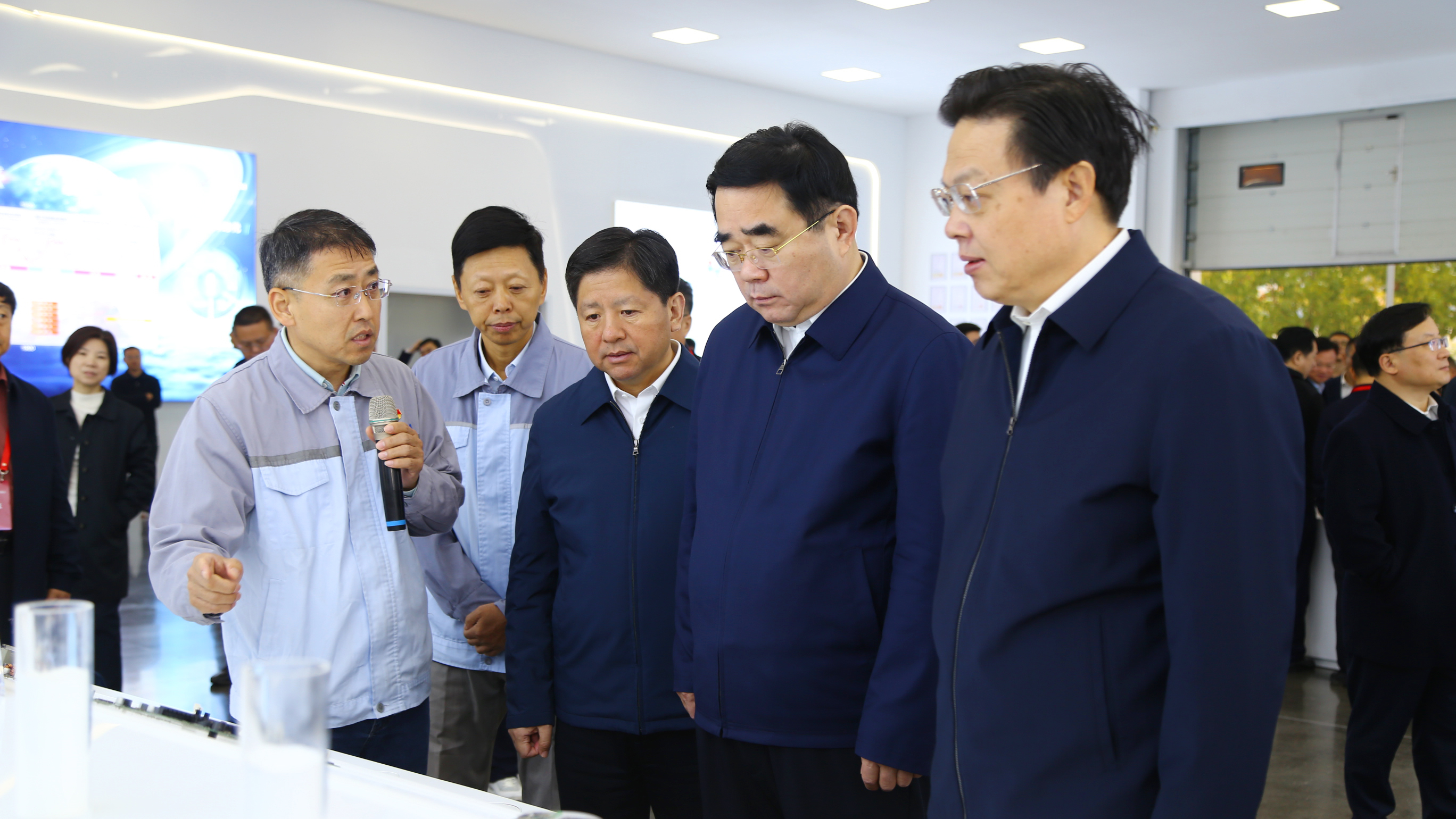 2024年适值“黄河流域生态保护和高质量发展”重大国家战略提出五周年。为做好“共同抓好大保护、协同推进大治理”,10月21日-23日,首届“黄河流域省(区)属国资国企对接交流会”在东营市召开。10月22日,山东省国资委党委书记、主任满慎刚带领与会领导莅临国瓷材料调研,东营市市委书记杨国强,市委常委、秘书长成秋林,公司副董事长张兵,董事长助理、催化材料事业部总经理吕玉兴等陪同参观调研。